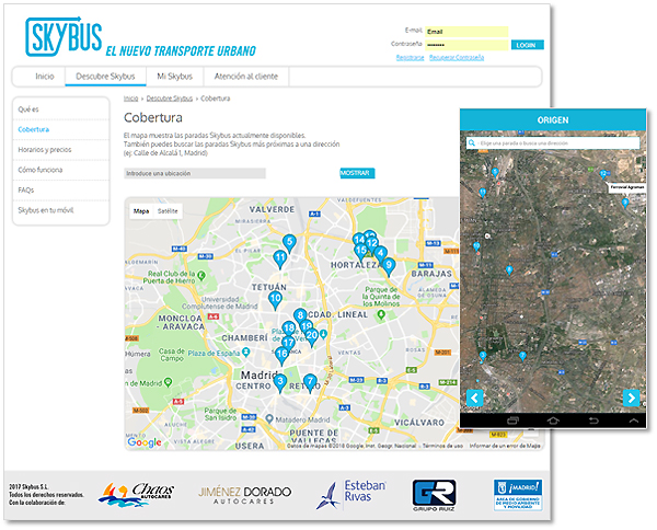 SKYBUS SOLUTION: A smart and customized transport network for the business park. It connects our clients' offices with the main public transport nodes of Madrid (10 of 11 Metro lines, 9 of 9 commuter rail lines and 5 major interurban bus exchanges). Supervised by the City Council and the Regional Transport Authority of Madrid, the Skybus service is provided by four operators with a fleet of 8 vehicles.